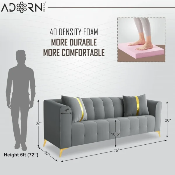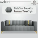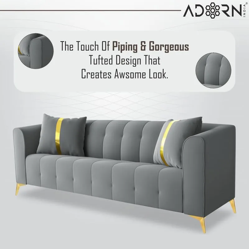 Adorn India Premium Mystic – 3 Years Warranty – 3 Seater Sofa Velvet Suede Fabric – Grey