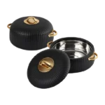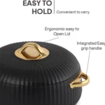 Cello Aurum Luxury Insulated Casseroles Set of 2, Black 1000ml Each | Double Walled Thermoware Casserole with Lid | Easy Grip Handle| Inner Steel Insulated Serving Bowl Casserole For Roti,Rice,Biryani
