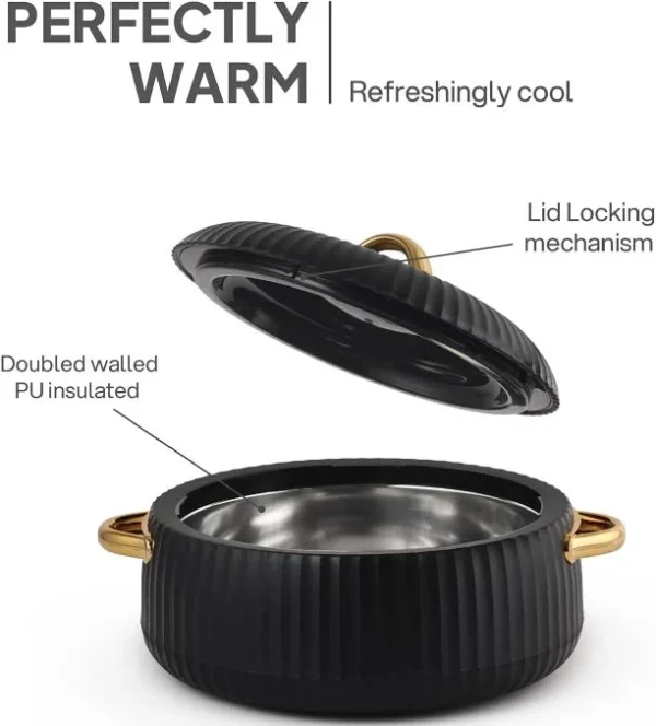 Inner Steel Insulated: The casserole features advanced inner steel insulation, designed to keep your dishes hot or cold for extended periods. This insulation ensures that your food maintains its optimal temperature from the kitchen to the table, enhancing your dining experience.
