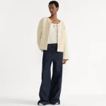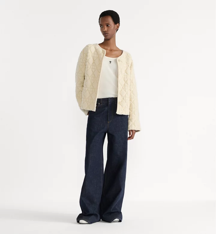 Part of the DiorAlps capsule, the jacket reframes House codes of elegance in a relaxed spirit. Knit in a white wool and cashmere blend with the Cannage motif, it features a straight silhouette embellished with ribbed finishes. The jacket will lend a couture touch to any of the season's casual looks.
