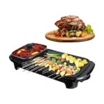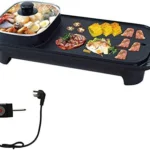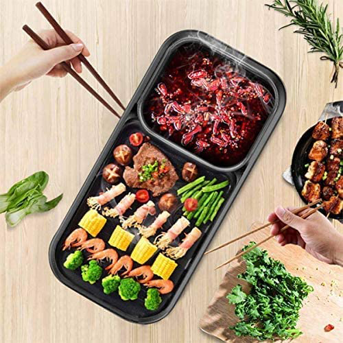 Korean Style 2 in 1 Multifunctional Nonstick Electric BBQ Raclette Hotpot with Grill Pan (Black)