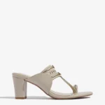 These ivory Kolhapuri heel sandals from Luna Blu showcase a broad braided strap and a toe ring, blending traditional charm with everyday comfort. Featuring a cushioned footbed for superior support and a sturdy block heel for added height and stability, they offer both style and ease with every step.