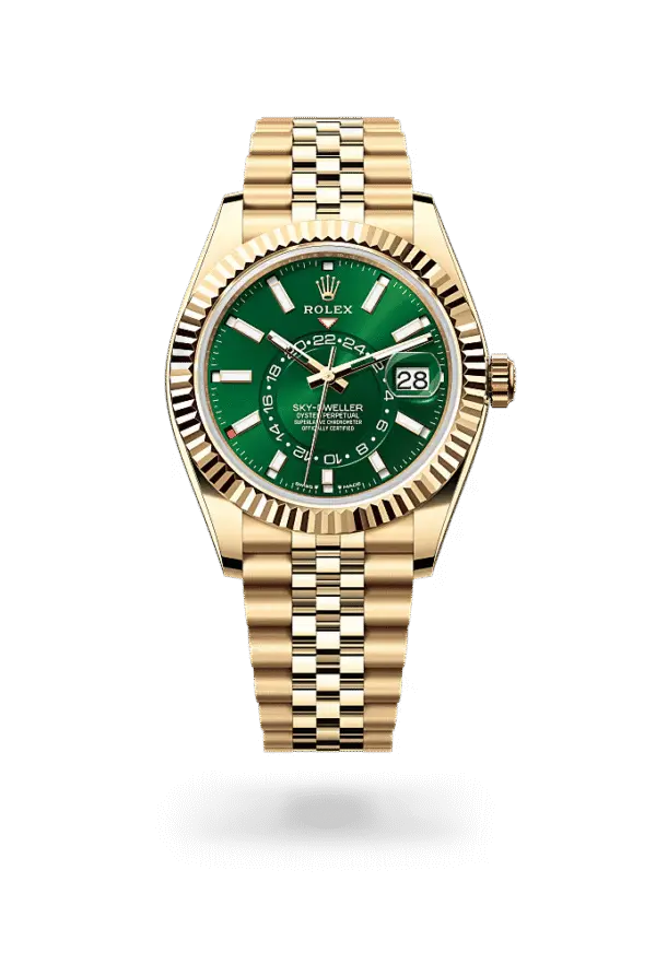 A fixed inverted red triangle on the dial points to the chosen reference time – the time at home or at the traveller’s usual workplace – on the off-centre 24-hour disc. At a glance, this 24-hour display clearly distinguishes daytime hours from night-time hours in the other time zone.