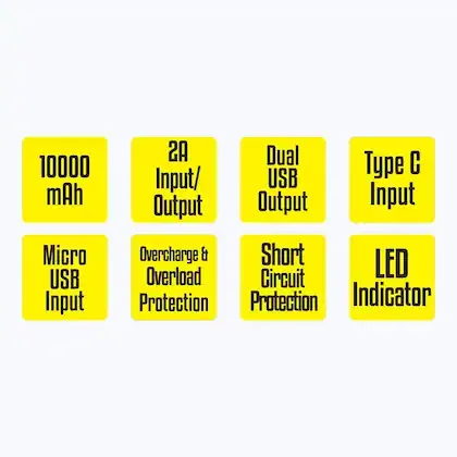 ZEB-MB10000S3 is a 10000 mAh capacity power bank that charges all your devices like your phone, tablet & more. The power bank has a textured finish that makes it look cool to carry anywhere. The power bank features two input options that include Type C and Micro USB input and comes with a dual USB output. It comes with an LED indicator and has protection from overcharge, overload, and short circuit.