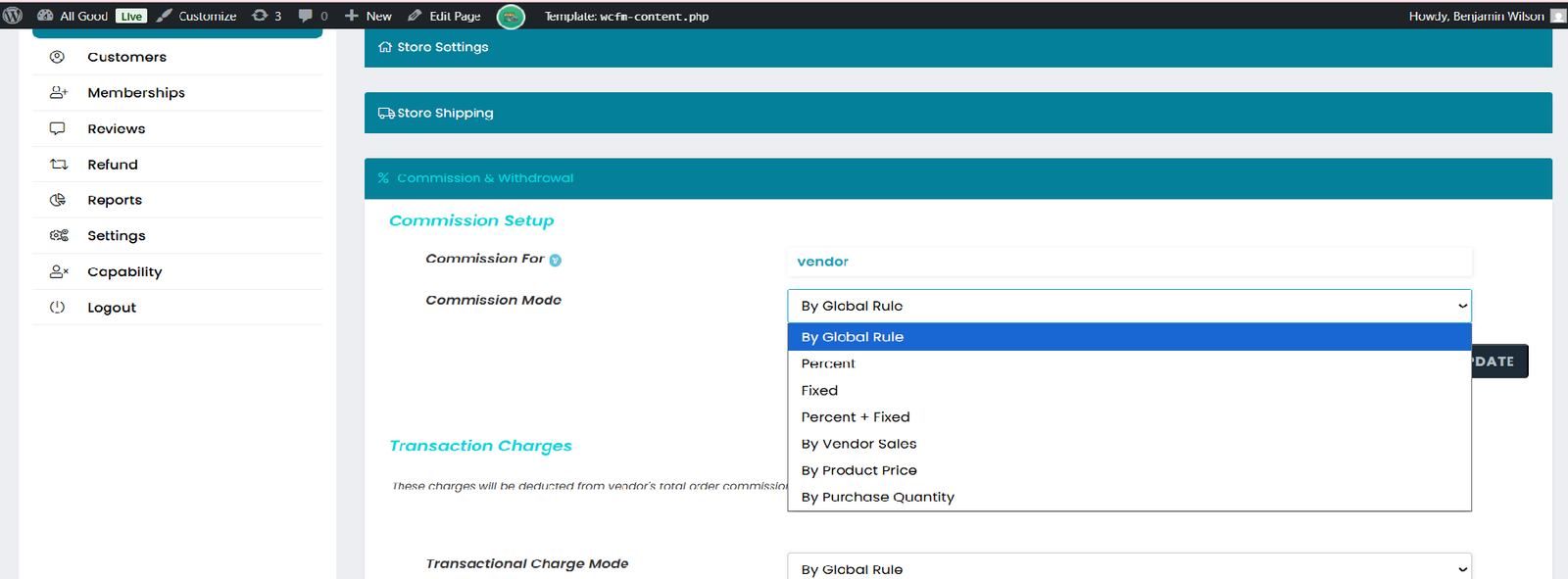 You have the ability to establish various types of commissions for different vendors across multiple products and categories.